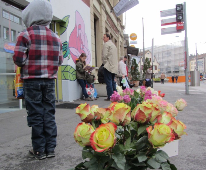 The Swiss carry their flower bouquets upside down. Also, Swiss men carry pink plaid shopping bags and seem wholly unaware that in a North American school ground, this would get them beat up.